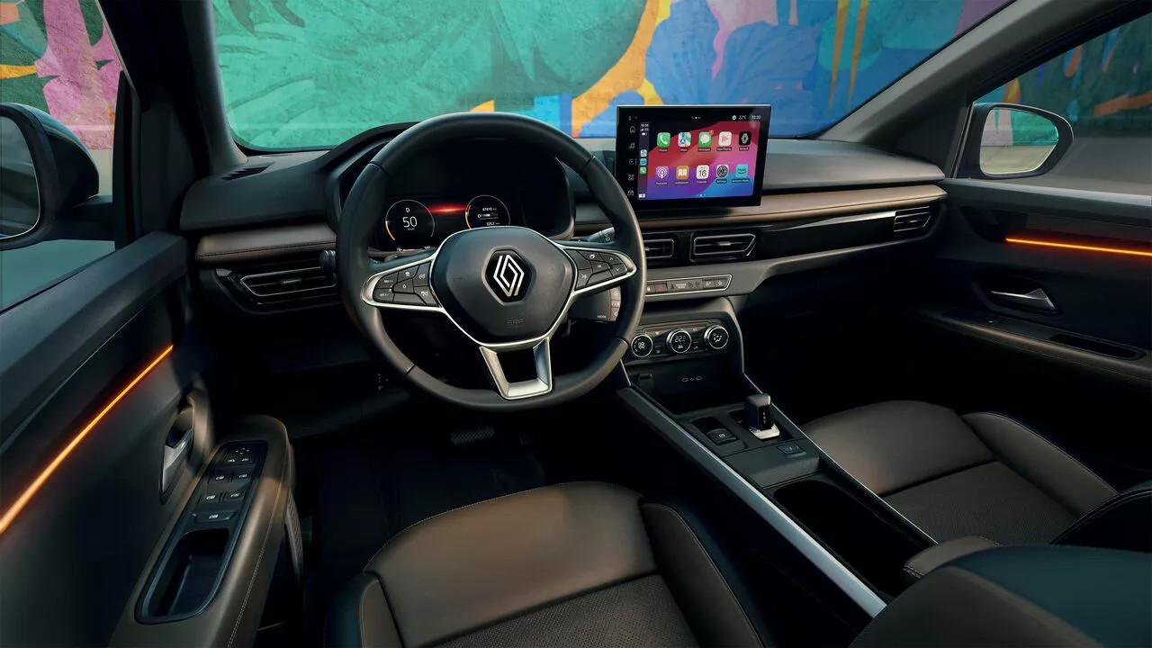 Com seu design interno inédito, o cockpit do Boreal é disposto em torno de um painel de bordo inspirado no Renault 5 E-Tech elétrico e no Renault 4 E-Tech elétrico, com o painel duplo horizontal openR. A primeira tela está localizada bem à frente do motorista, com um generoso painel de instrumentos digital de 10 polegadas que exibe todas as informações relacionadas à condução. Logo ao lado se encontra a tela de 10.1 polegadas do sistema multimídia central, formando um layout tecnológico e fluido, que valoriza as funções conectadas.